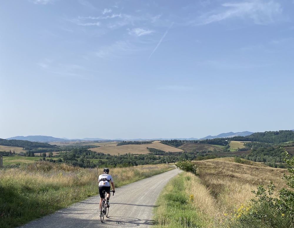 It offers challenges and rewards in equal measure, combining some testing climbs with several beautiful sweeping descents. As you ride, you are immersed in a countryside that continually presents you with striking vistas: vistas you will simply not see had you tried to plan this ride yourself. From early morning silhouettes of the mountains around Lucca, to almost aerial views of the golden fields of Tuscany, to the view of Siena on the last descent that you won't get on a normal approach road. That view provides great motivation for the final, unforgettable climb to the centre of Siena. Throughout the ride, Alison makes sure you ride at a tempo that ensures you complete the course, complementing her excellent advice to fit an 11/32 cassette and compact chainrings before you set off. Chapeau, Alison, for a truly memorable ride.