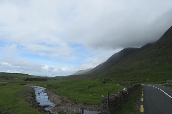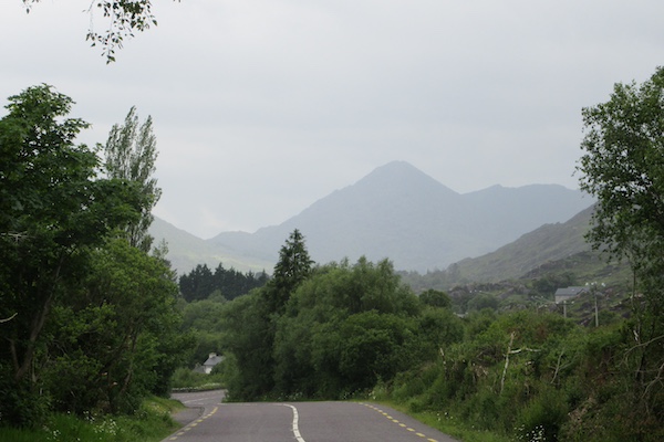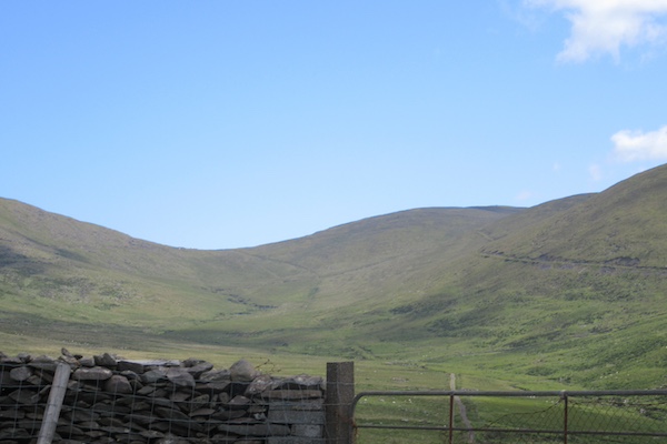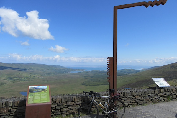 At the top of a longish but managable climb up to Com an Chiste, where the wind would blow you across the road (almost did on one bend on the descent).