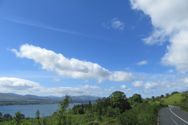 The view north from the Ring of Kerry as you travel east-north-east from Cahirsiveen. The headland in the distance is the Dingle peninsula which is where I'm headed.
