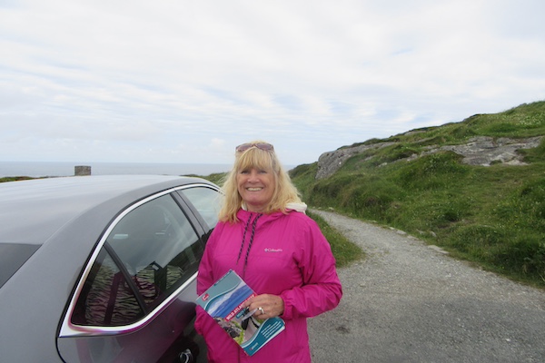 Keelin, who is driving the support car, at the Whiddy Island View.