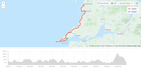 The final leg from Killmer, through Kilrush, to Carrigaholt was slow and painful due to the strong headwind and very rough road surface.
