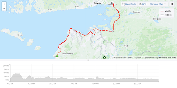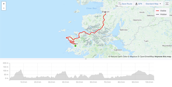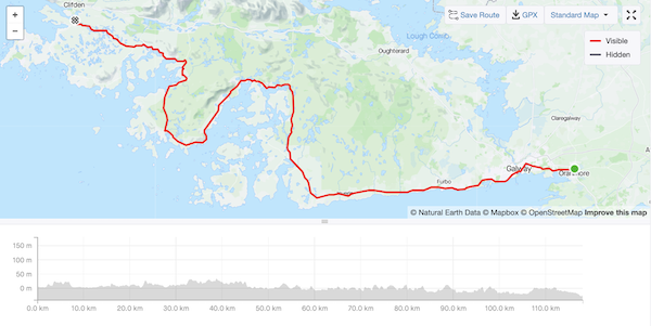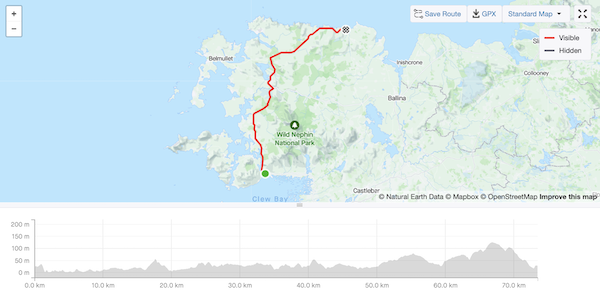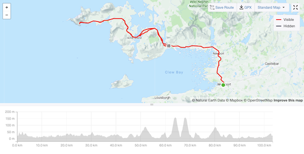 Testing my resolve once again, yet another sign to turn left and take the scenic route away from the direct route to Westport presented itself at Letterfrack. Another wonderful loop ensued, bringing me back to the main road to Wesport. I was fortunate that, just before completing that loop and rejoining the main road, Keelin pulled up in the car and asked me if I was okay. I revealed that Google Maps had given me an alternative route north-east and that I was about to take it. Sense prevailed though, and I took Keelin's advice not to be distracted and just follow the route. Thank goodness.